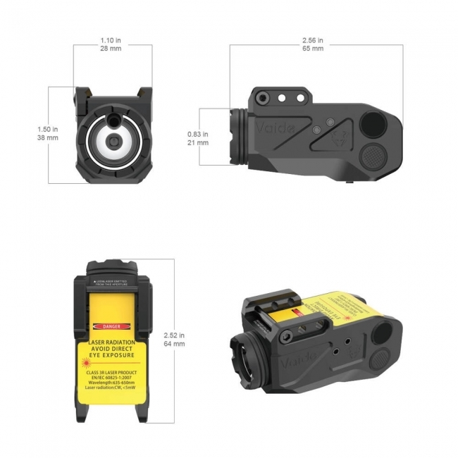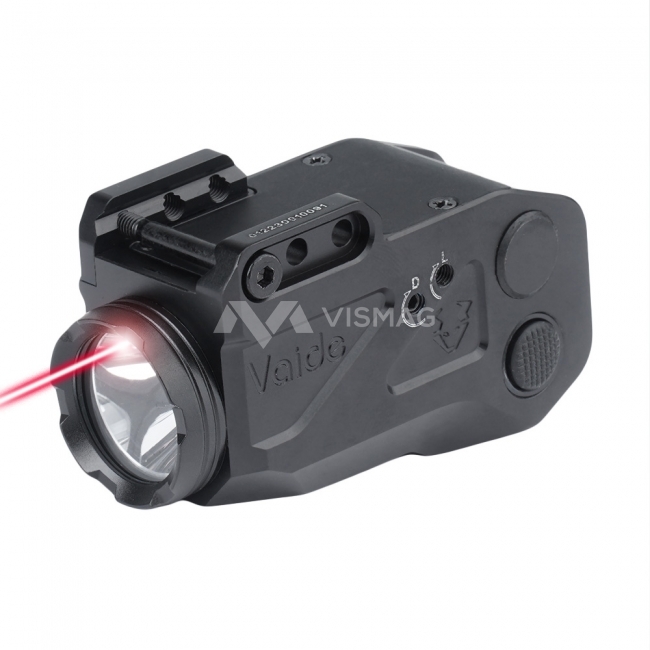 Latarka taktyczna na broń Scrapper Combo od firmy Vaide wyposażona jest w montaż 21 mm na szynę Weaver. Mocna dioda LED emituje strumień światła o maksymalnej mocy 500 lumenów, który precyzyjnie oświetla cel. Latarka posiada czerwony laser klasy IIIa o długości fali 630-660 nm.