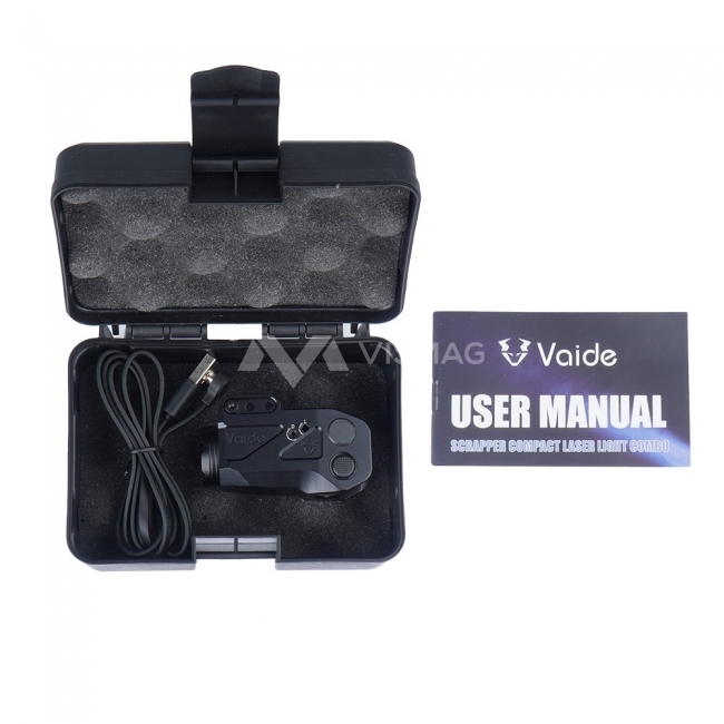 Latarka taktyczna na broń Scrapper Combo od firmy Vaide wyposażona jest w montaż 21 mm na szynę Weaver. Mocna dioda LED emituje strumień światła białego o maksymalnej mocy 500 lumenów, który precyzyjnie oświetla cel. Latarka posiada zielony laser klasy IIIa o długości fali 510-550 nm. Urządzenie posiada obudowę wykonaną z wytrzymałego aluminium 6061-T6, którą spełnia normę IPX4.