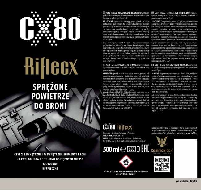 Niestety nie. Sprężone powietrze Riflecx ma optymalnie dobrane ciśnienie oraz nie zawiera wody. Jest to szczególnie istotne dla broni palnej oraz elementów optyki jak kolimatory i lunety. Nie pozostawia śladów po czyszczeniu.