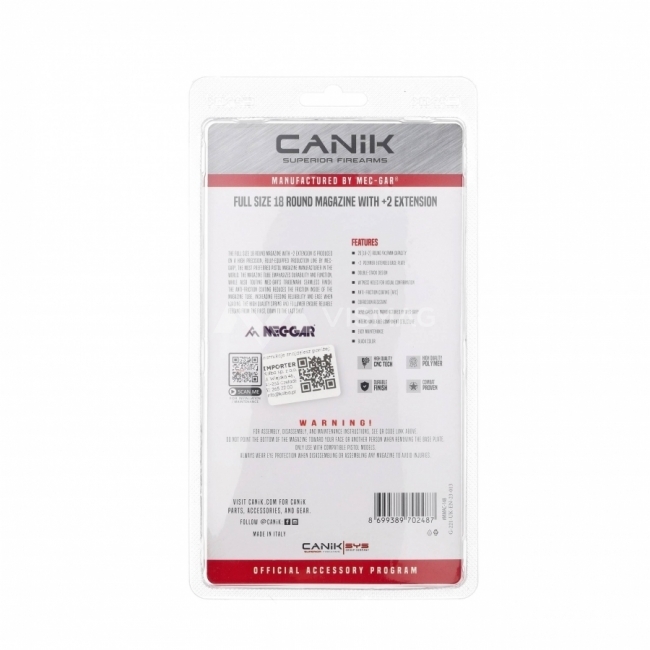 Magazynek Canik Full Size to doskonałe rozwiązanie dla strzelców ceniących większą pojemność, niezawodność i wygodę obsługi. Sprawdzi się zarówno na strzelnicy, jak i w zastosowaniach bojowych, oferując precyzję działania i trwałość, na której można polegać.
