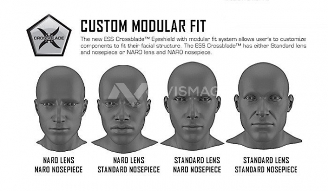 W modelu Crossblade™ użytkownicy mogą wybierać pomiędzy wizjerem i noskiem standardowym lub wizjerem i noskiem NARO, co daje w sumie cztery możliwe konfiguracje. Dzięki takiemu modułowemu rozwiązaniu każdy użytkownik może dopasować rozmiar systemu Crossblade™ do kształtu swej twarzy.