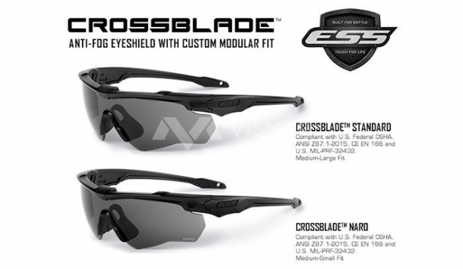 Charakteryzujące się szeroką możliwością konfiguracji okulary balistyczne Crossblade™, należące do linii produktów Cross-Series™. Wyposażone są w odporne na zarysowania, łatwe do wymiany wizjery balistyczne z ochroną anti-fog, które nie zniekształcają obrazu na całym polu widzenia oraz zapewniają 100% ochronę przed promieniowaniem UVA i UVB.