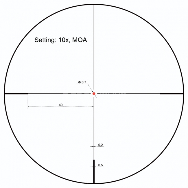 Za celowanie odpowiada siatka celownicza VFD-2 o podświetlanym punkcie celowniczym z 11 stopniami natężenia. Punkt celowniczy zasilany jest pojedynczą baterią CR2032. Luneta na dystansie 100 m zapewnia pole widzenia rzędu 13,97 m przy minimalnym zbliżeniu oraz 3,49 m przy maksymalnym. Dodatkowo można regulować dioptrię w zakresie od -2 do +2.