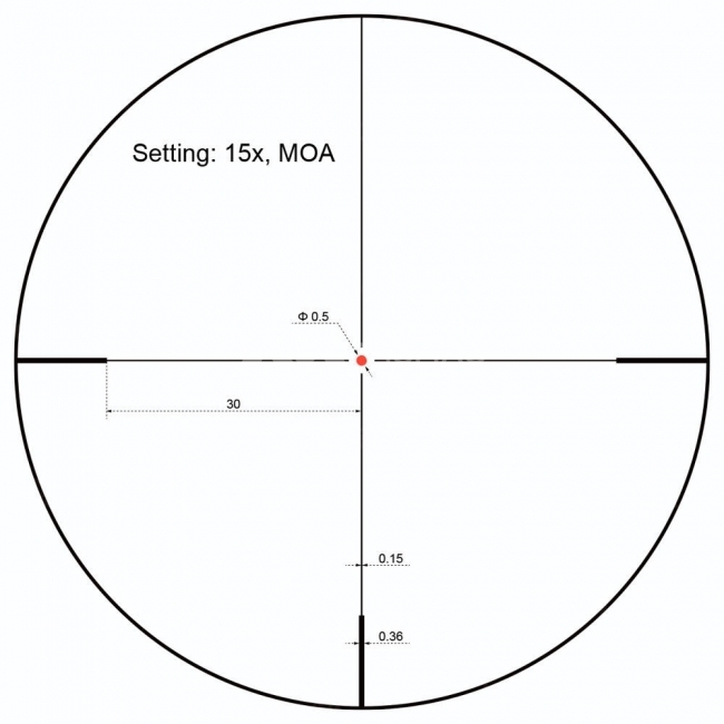 Za celowanie odpowiada siatka celownicza FD7 o podświetlanym punkcie celowniczym z 11 stopniami natężenia. Punkt celowniczy zasilany jest pojedynczą baterią CR2032. Luneta na dystansie 100 m zapewnia pole widzenia rzędu 13,97 m przy minimalnym zbliżeniu oraz 3,49 m przy maksymalnym. Dodatkowo można regulować dioptrię w zakresie od -2 do +2.