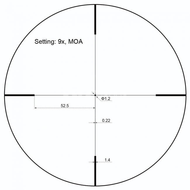 Pojedynczy klik regulacji krzyża 1/4 MOA