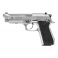 Model SS/SS (Stainless Steel) wyróżnia się eleganckim, całkowicie stalowym wykończeniem w kolorze srebrnym, które nie tylko dodaje mu estetyki, ale również zapewnia wyjątkową trwałość i odporność na korozję. Pistolet charakteryzuje się ergonomicznym chwytem, który ułatwia celne strzelanie i pozwala na pewne trzymanie broni, niezależnie od warunków użytkowania.