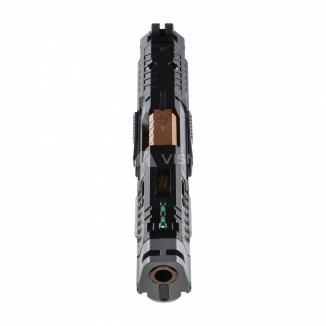 TTI Combat zapewnia agresywny i dobrze trzymający chwyt, kompensator, ryflowaną lufę, nowy zwalniacz zamka, płaski spust (z przełamaniem pod kątem 90 stopni), oraz oczywiście możliwość montażu różnego rodzaju kolimatorów.